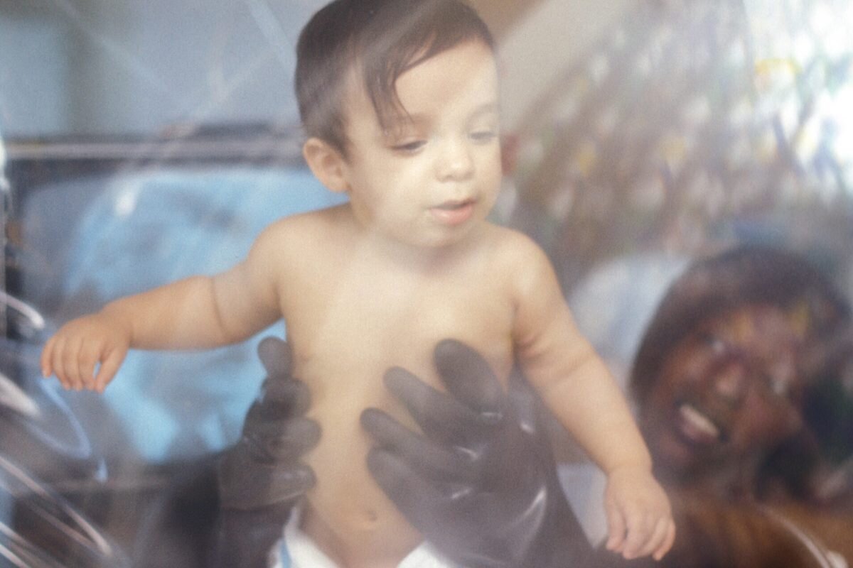 Крещение Дэвида проводили дезинфицированной водой. Все, что попадало в пузырь тщательно дезинфицировалось с помощью химических веществ. К ребенку прикасались исключительно только с помощью специальных пластиковых перчаток вделанных в стену изолятора. А из-за шума двигателей, который поддерживали постоянное давление в пузыре, Девид плохо слышал, что говорят ему.