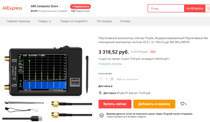 После покупки NanoVNA и его успешного использования мне очень хотелось поиметь такой же недорогой анализатор спектра. В сентябре после поисков на АЛИ я нашел там приборчик, очень похожий на NanoVNA.