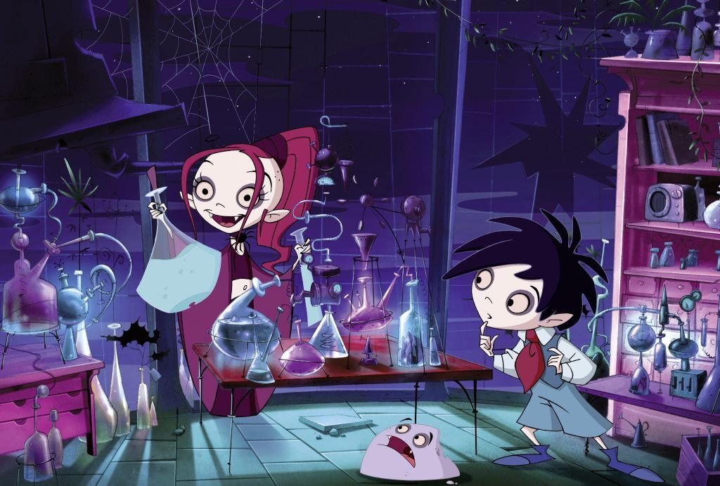 - Один из лучших мультипликационных фильмов про жизнь маленьких вампиров - "Школа вампиров". Мультсериал, который покорил сердца детей нулевых. Сюжет разворачивается в школе, где учатся будущие вампиры "Фон Форрикус". Студенты учатся использовать свои навыки вампиризма. Главным героем является вампир по имени Оскар он начинает дружить с девочкой Солнышко. Самое забавное то что он будучи вампиром боится саму кровь. Действие происходит в небольшом городке, расположенном где-то в Трансильвании (Румыния). К тому же, дедушка Солнышко — охотник на вампиров, доктор Кузьма Чесноков, который всё время пытается уничтожить всех вампиров. Однако он всегда терпит неудачи, а его рассказам о чудовищах ночи никто не верит. На тот момент это прорыв в рисовании мультсериалов. Некоторые серии не связанные между собой, но это не мешает наблюдать за взаимоотношений персонажей. По истине потрясающая история, которую можно смотреть в любом возрасте.