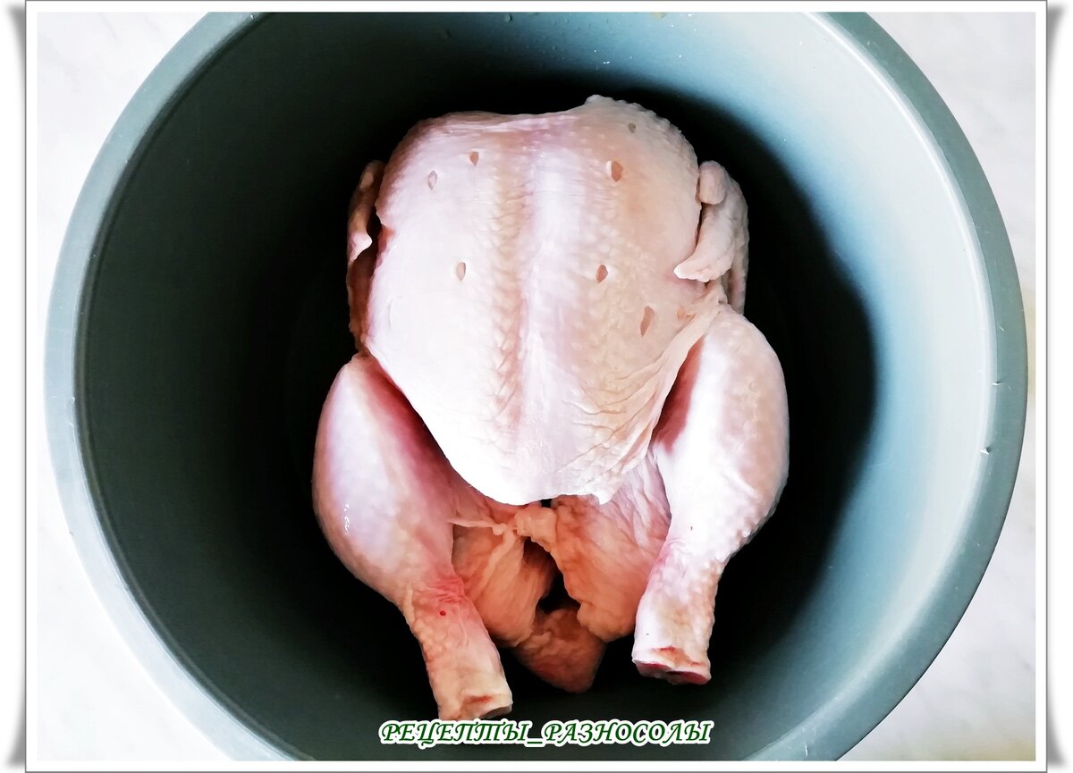 Существует много способов приготовления курицы в духовке целиком, о них можно прочитать и в поваренных книгах, и в интернете. А я хочу поделиться с вами, мои дорогие хозяюшки, своим способом запекания птицы, при котором мясо остается сочным, мягким, ароматным. Даже если вы первый раз в жизни стали к плите, при таком способе подготовки птицы к запеканию, вы произведете фурор приготовленным блюдом. Раньше, не зная этого способа, я запекала курицу, как и многие, делала разные маринады, настаивала в нем тушку птицы, а затем запекала до легкой румяной корочки. Но даже при такой готовке, когда блюдо не подгорало, внутри мясо получалось суховатым. Однажды, разговаривая на работе с коллегой, я узнала, что ее невестка запекает гуся, но перед этим ночь вымачивает его в солевом растворе. Мясо, при такой готовке, отстает от косточек, становится сочным и мягким. И я решила этот способ перенять, но при готовке курицы. А почему бы и нет? Во-первых, покупая курицу, обращаем внимание на ка