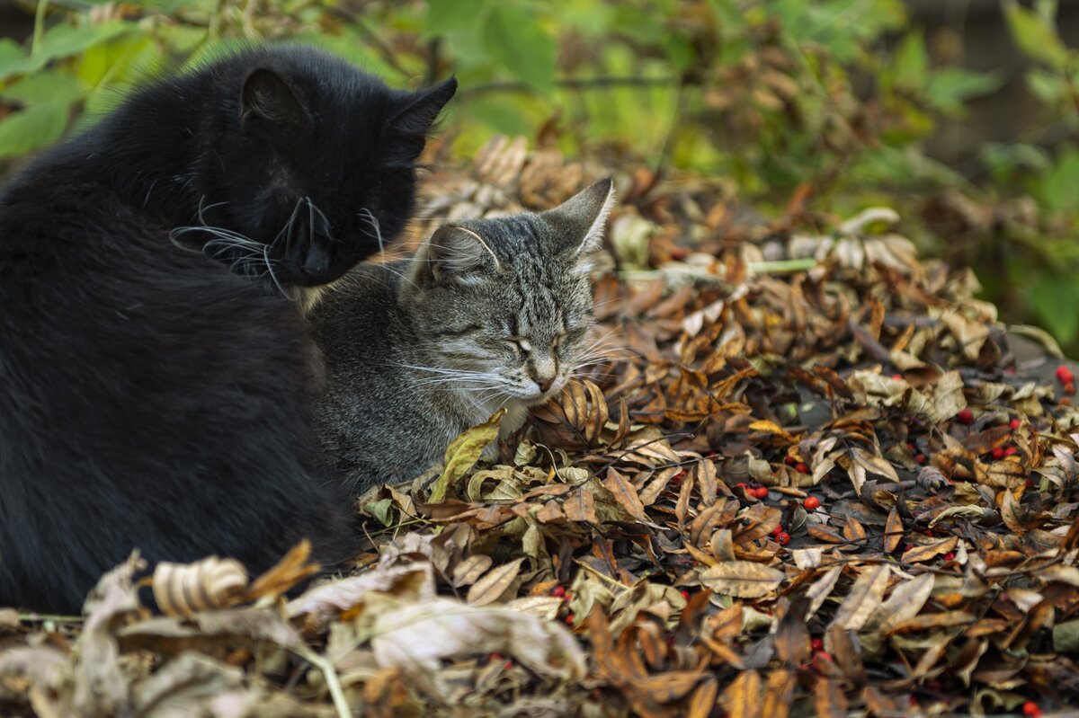 Я продолжаю свою фотоохоту на котов. Этой осенью я снимала не так много пушистых, но фотографии получились интересные. Я влюбилась в эту пару. Часто их вижу. Они всегда вместе. Жмутся к друг другу. С виду котики пожилые и выходят из дома чтобы посидеть вместе на солнышке. На теплых трубах они тоже вместе. Такую заботу и у людей не всегда встретишь. На окружающих внимание они не обращают. Я могла спокойно их фотографировать. Черный котик особенно ласков к полосатику. Иногда я встречаю людей, которые не понимают почему я снимаю кошек. Они не видят в этом "великого" смысла, но для меня это живой пример любви и преданности и нам, людям, нужно этому поучиться. Дальше у нас киса, которая не любит фотоаппарат. Не помогла лакомство и ласка. Котик убегает. Оставил мне лишь вот такой кадр. А это мой приятель. Мы не виделись пару лет. Когда то я гуляла почти каждый день в пригороде. И там мы часто пересекались с этим котом. И вот мы опять встретились и он мне рад. Удивительно, что он меня зап