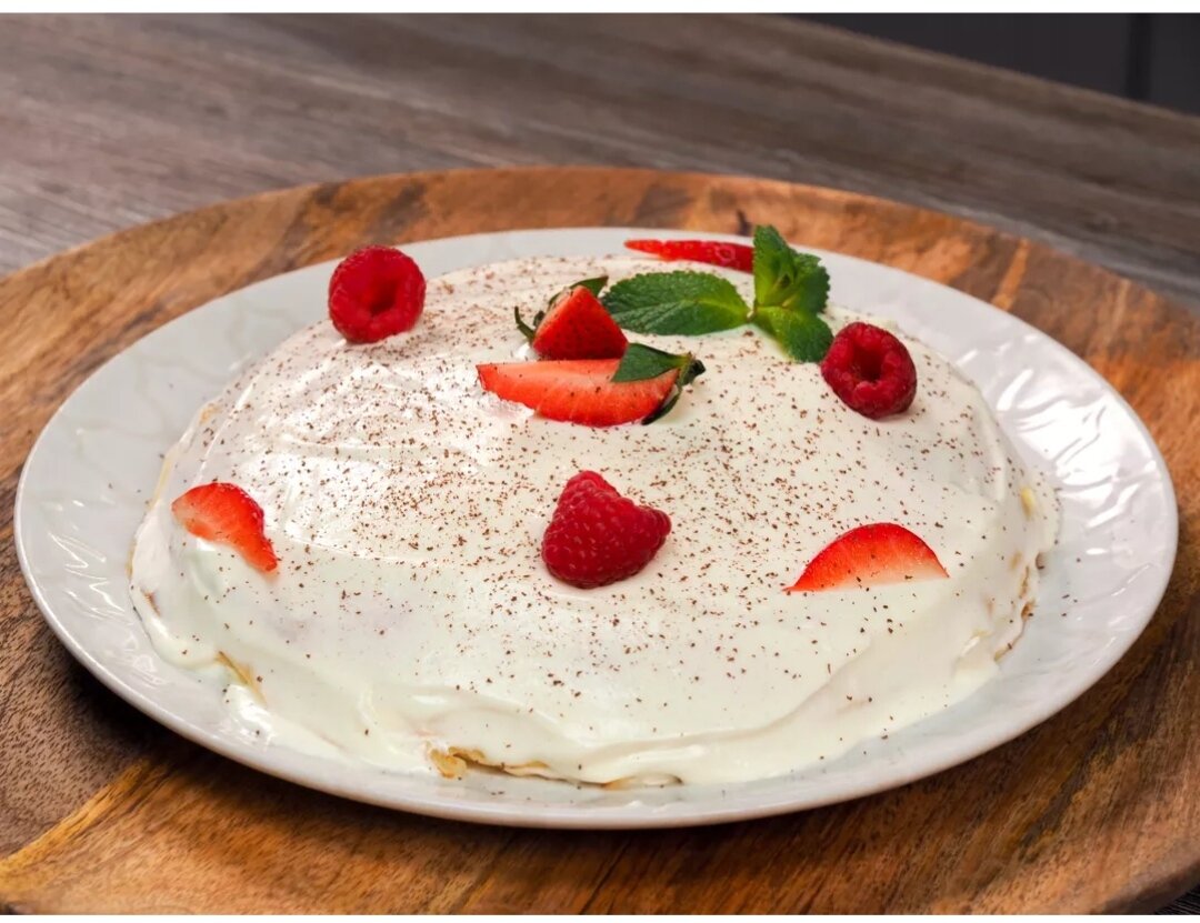Рецепт блинного торта возник относительно недавно, но уже имеет десятки вариантов. Один из них — со сливочным сыром и малиной. Используя в начинке сливочный сыр, можно быть уверенными, что торт не развалится, а крем не потечет. Крем для торта из блинов обязательно должен быть густым и плотным. Подойдут также творожный или масляный крем и взбитые сливки. Также стоит помнить, что чем больше диаметр сковороды, тем ниже выйдет торт. Поэтому оптимальным решением будет сковорода диаметром 16-20 см. Калорийность 165,01 ккал Белки 5,71 г Жиры 9,12 г Углеводы 15,52 г Пищевая ценность на 100 г. Калорийность рассчитана для сырых продуктов. Будет готово через 1 час Время на кухне 1 час Содержит аллерген Белок коровьего молока, Злаки, содержащие глютен, Яйцо Убедитесь, что у вас нет индивидуальной непереносимости других ингредиентов. Кухня Европейская, русская ПРОДУКТЫ ДЛЯ БЛИНОВ Штука 1 Куриное яйцо 2 шт. = 120 г Сахар 1 ст. л. = 25 г Соль 0.5 ч. л. = 5 г Молоко 3,2% 1.5 стакан = 300 г Пшеничная