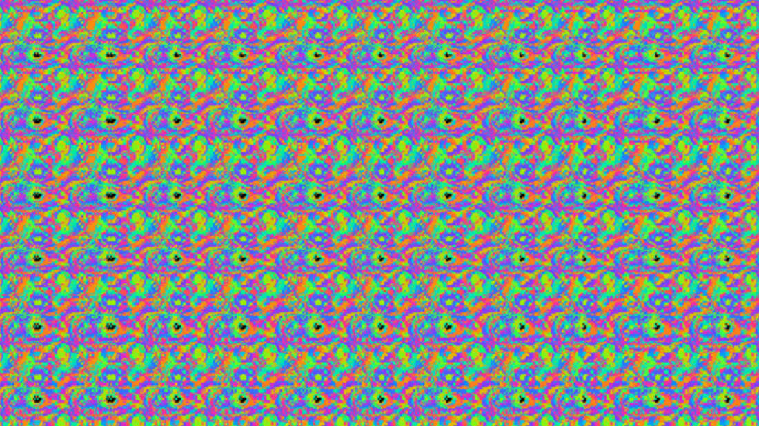 Дедушкой стерео картинок была стереограмма со случайными точками, изобретенная нейробиологом и психологом Белой Джулеш в 1959 году для проверки способности людей видеть в 3D. Джулес создавал одно изображение однородных, беспорядочно распределенных точек. Затем он выбирал круговую область точек на изображении и слегка сдвигал эту область на втором изображении. Кто-то, просматривающий две фотографии бок о бок, видит круг, плавающий над фоном, хотя случайные точки не указывали на глубину. Это подтверждало его идею о том, что восприятие глубины происходит в мозге, а не в самом глазу. Двадцать лет спустя студент Джулеса по имени Крис Тайлер и программист Морин Кларк обнаружили, что то же самое можно сделать с одним изображением. Их исследование показало, что происходит в глазах и мозге, когда зрители смотрят на стереограммы. Когда вам показывают такое изображение, ваши глаза могут смотреть в две разные точки, но поскольку изображение представляет собой повторяющийся шаблон, мозг обманываетс