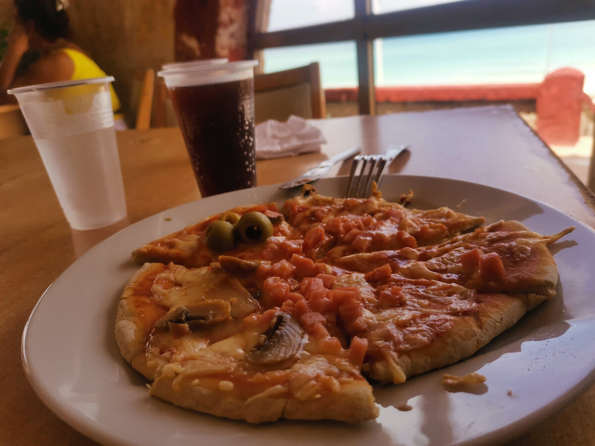 Утро этого дня на Кубе началось с Ильиничны.. Или как успели её прозвать начинающая складываться компания русских окупировавших одинокое но очень полезное дерево на пляже - Терешкова... Ну просто звали её Валя.. Валя нарисовалась из Москвы и в свои 70 с чем то лет чувствует себя на всех курортах просто потрясающе и поэтому старается особо не жить в своём коттедже с лифтом.. Купается она обычно как и дельфин часа по 4 ни разу не выходя на пляж.. Я в течении часа выслушала историю о том как одна проститутка ну грубо говоря отправила на тот свет её брата и будучи нотариусом куда он её сам у троил отняла у его родственников все его сбережения, дом, машины и т. Д. К концу рассказа который пришлось закгруглить я поняла почему от неё все разбегались.. 😝.. Попробовали пиноколаду за 2 евро.. Потом мы с Наташей пошли на полдник.. Наконец то попробовали разные виды пиц.. А потом решили сгонять на тот другой пляж по правую руку от нашего.. Песок там очень белый.. И место попустыннее.. Это не