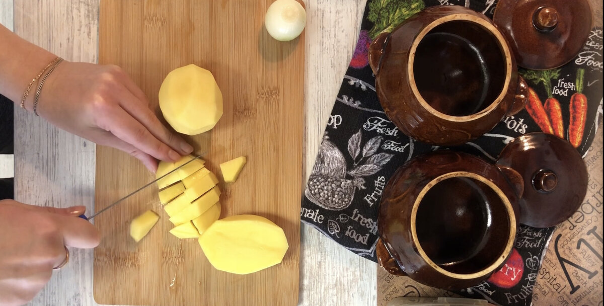 Нарезать картошку кубиками.