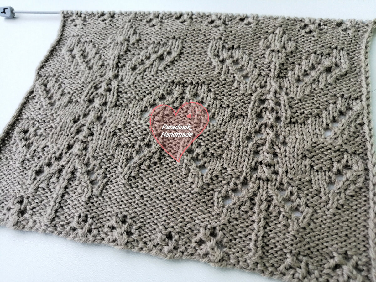 На этот узор спицами меня вдохновила накидка «Листья», которую я вам недавно показывала. Я попробовала адаптировать жаккардовую схему листика «Монстера» и связать свой ажурный вариант.
