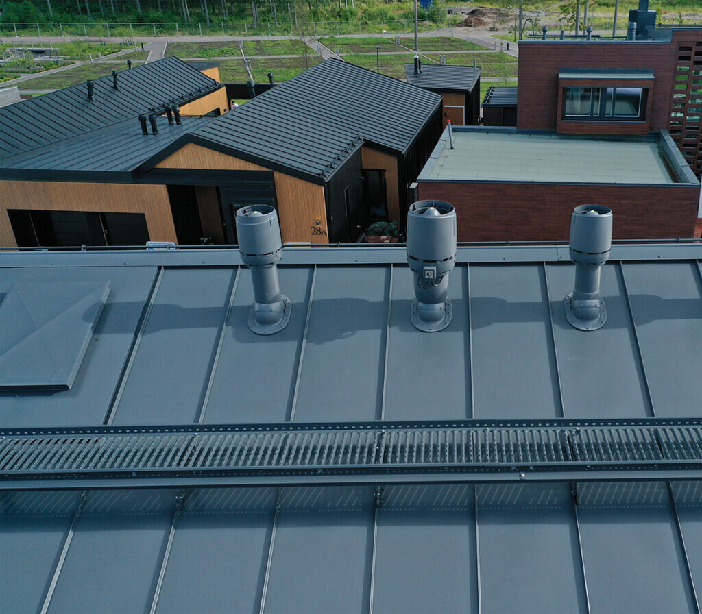 Крышные вентиляторы – это многофункциональные изделия для комплексной вентиляции. В данной статье мы предлагаем ознакомиться с различными возможностями их применения. Механическая вентиляция 1. Реконструкция системы вентиляции в старом доме Старая система естественной вентиляции может быть реконструирована в механическую с помощью крышного вентилятора и регулятора скорости. Крышный вентилятор P-типа устанавливается на кровле с помощью подходящего проходного элемента от VILPE. При наличии в доме вентиляционной шахты используют вентилятор S-типа. Для этого перед установкой кровельного вентилятора, вентиляционная шахта гильзуется и затем вентиляционные каналы шахты перекрывают металлическим листом, на который устанавливается вентилятор S-типа. В случае, если осуществить гильзацию шахты невозможно, перед установкой вентилятора рекомендуем очистить ее от скопившейся грязи и пыли для того, чтобы предотвратить попадание пыли из шахты на лопасти вентилятора и избежать его поломки.