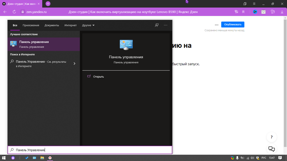 Для этого пишем в поиске: "Панель управления" и открываем её