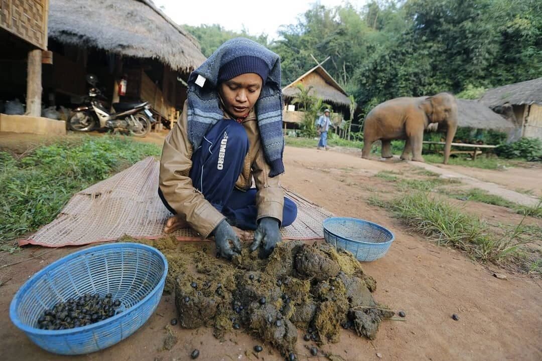 Самый дорогой кофе.. Black ivory "чёрная слоновая кость" — сорт кофе, производимый из зерен арабики, пропущенных через пищеварительный тракт слонов. Производится в Таиланде. 1кг стоит 1100$. Слон переваривает зерна от 15 до 30 часов вместе с бананами, сахарным тростником (зёрна пропитываются землистым и фруктовым запахом). Погонщики слонов и их жены выбирают кофе из слоновьего помета и сушат на солнце. Чтобы получить один килограмм «блэк айвори», необходимо скормить слону 33! кг свежих кофейных ягод. Большая часть зёрен пережевывается, разламывается или теряется в высокой траве. Не опасно ли это для слонов? Директор Anantara Hotel (где угощают этим сортом) Джон Робертс отвечает: "Я узнал, что для образования кофеина, зерна кофе должны быть нагреты выше 70°С. Так что кофейной зависимости у слонов не возникает».