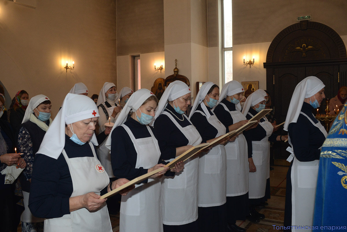4 ноября 2021 года, в день празднования Казанской иконе Божией Матери, добровольцы Свято-Елисаветинского сестричества при Пантелеимоновском храме Тольяттинской епархии произнесли обеты и получили благословение на ношение белого плата с крестом.