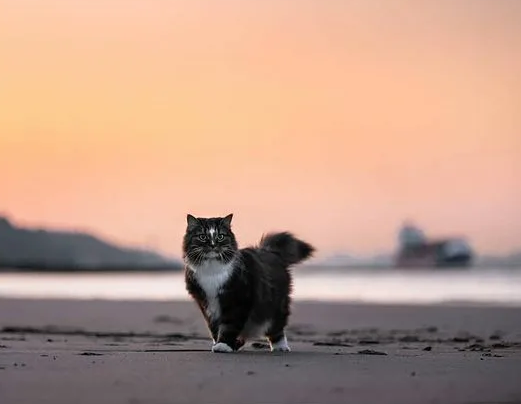 Привет, мои дорогие друзья! Простите, что вчера ничего не опубликовала! Сегодня у нас последний рассказ из "Морских историй". Пустынно было в тот вечер, очень пустынно, никого не было на морском берегу кроме пушистого серовато-бурого кота с белой звездой на лбу. На вид был он молод — года три, не больше, и являлся помесью норвежской лесной и сибирской кошки. Красавец медленно ступал по влажному от волн песку, иногда он оглядывался по сторонам, словно ища кого-то. Персиковый нежный свет летнего заката наполнял вечер чарующими красками и готовил к прохладной ночи и сладостным снам. Кот порой прерывался от своих неведомых мыслей и любовался розовато-златым небом, он явно никуда не торопится, но ждал кого-то. Его мягкая фигура ярко вырисовывалась на светлом морской и небесном фоне, заставляя обратить на себя внимание. Однако море уже много раз облизало берег, а никто не являлся к коту. Тем временем в мозгу его проносились обрывки воспоминаний. — Мяфер! Ко мне, дружок! — звучал в его голо