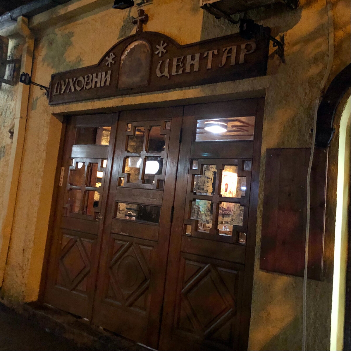 В столице Черногории мы отказались волею судьбы, переносу рейса на день позже и благодаря испортившейся напрочь погоде на побережье. Как часто бывает к концу отпуска, бюджет поездки успел пробить дно… в первый вечер я гуляла по центру скоромной и простоватой для столицы Подгорицы и натолкнулась на необычное заведение. Гугл мэпс рассказал немного подробнее о нем. Взяла кафе на заметку. На следующий день, в промежутках между дождями, мы отправились обедать (трапезничать ) именно туда и нисколько не пожалели. Есть меню на английском языке, официанты, цены какое-то нереальные для Черногории. Например, порция кальмаров с картофелем (фри или отварной на выбор) 2 евро. Суп 1,5 евро : огромная, сытная порция вкуснейшего рыбного густого супа. Салат 0,5 евро. Кофе тоже по 0,5 евро.. в общем , сытный обед на троих, из которого мы не притронулись к пицце Совсем (забрали с собой) обошёлся нам в 12 евро. Похожие цены были в столовой в топографом центре, но качество еды в трапезной нам показалось б