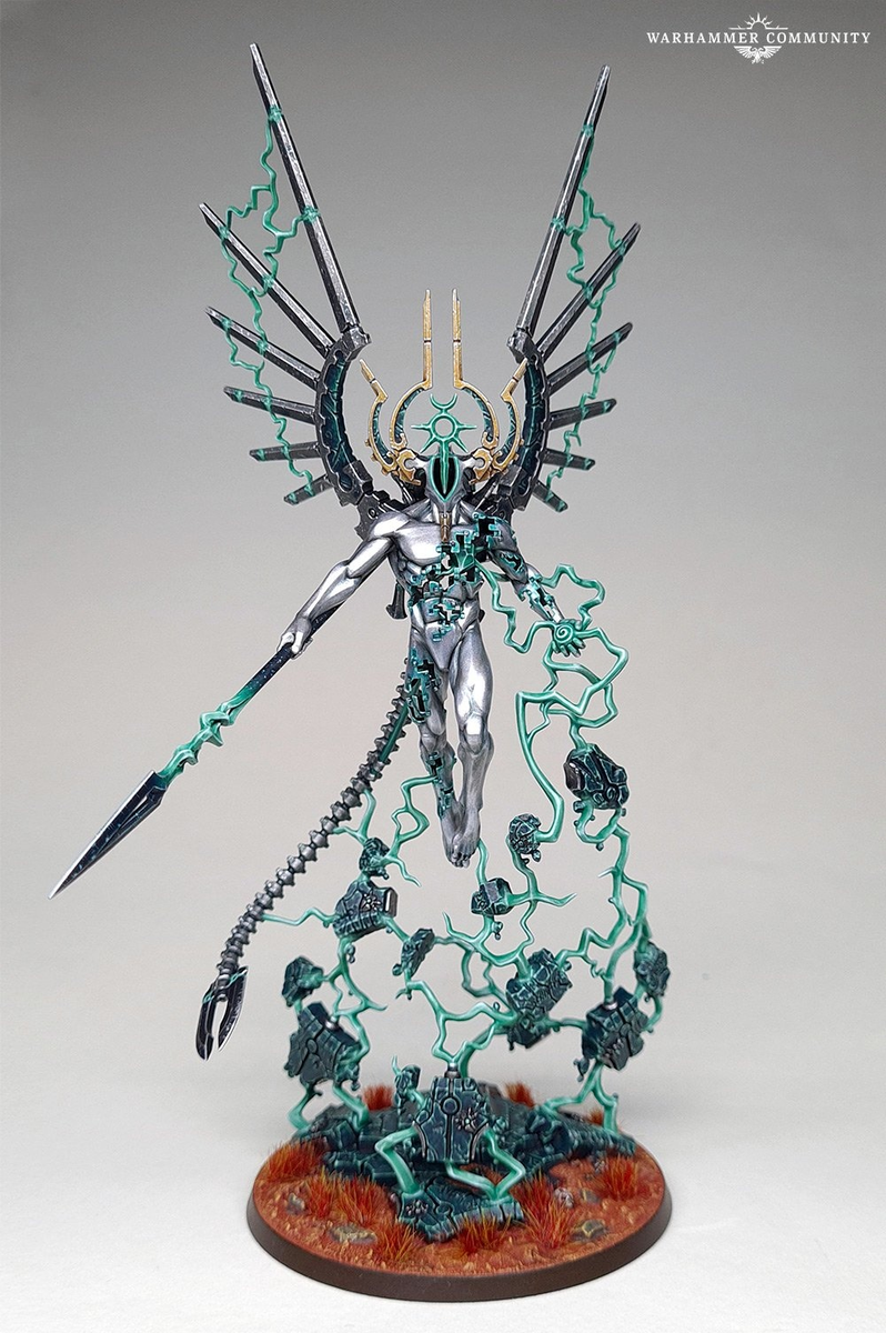 Создание модели Даррен: один из художников из нашей студии, Дэйв Ферри, принёс мне несколько отличных концепт-артов. Его идеи натолкнули меня на итоговую версию дизайна миниатюры осколка К’тан Дракона Пустоты. Я попробовал придать ему несколько разных поз и решил остановиться на той, в которой он выглядит движущимся вперёд. Мне важно было сделать эту миниатюру пустотелой, чтобы она интересно смотрелась и выделялась среди прочих. Это стало настоящим вызовом, ведь я также хотел, чтобы модель была прочной и надёжной. Она не должна дрожать и колыхаться, когда берешь её в руки, её должно быть удобно перевозить. Очень важна общая композиция миниатюры. Я хотел, чтобы осколок К’тан Дракона Пустоты в буквальном смысле сокрушал землю вокруг, демонстрируя тем самым мощь, которой некогда обладали звёздные боги. Молнии усиливают это ощущение, вместе с тем поднимая осколок К’тан над землёй, из-за чего он выглядит сверхъестественным. Было очень интересно работать над его почти что «цифровой» текстуро