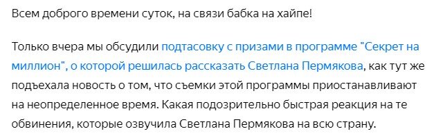 После откровений Пермяковой приостановили съемки программы"Секрет на миллион"