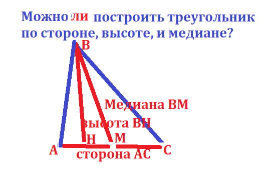 Можно ли построить треугольник по основанию, высоте и медиане, проведённым к нему? Другие стороны и углы не известны