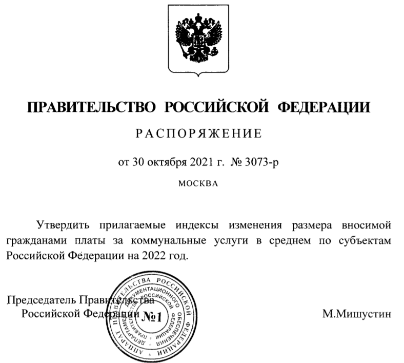 День добрый ! Новость ожидаемая , НО не слишком приятная . Накануне длинных "выходных" , под шумок новостей о локдаунах совершенно незамеченным осталось распоряжении правительство № 3073-р. А между тем коснется оно Всех , в большей или меньшей степени. Итак 30.10.2021 было подписано распоряжение правительства которое утвердило ...индексы изменения размера вносимой гражданами платы за коммунальные услуги в среднем по субъектам Российской Федерации на 2022 год. Если говорить проще , то нам объявили насколько подорожают коммунальные услуги в 2022 году ! Больше всего не повезло Чеченской Республике ,она на первом месте , подорожание коммунальных услуг , у них в регионе составит -6,5 % ! На втором месте антирейтинга Санкт-Петербург - 6,3 % ! Питер таки обошёл Москву с небольшим преимуществом в 0,3% , у Москвы коэффициент -6,0 % На "почетном" третьем месте Севастополь и Республика Крым - 6,2 % ! Больше всего повезло жителям региона ,аутсайдерам гонки подорожания коммунальных услуг, Све