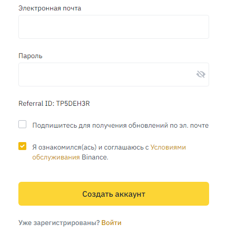 С каждый годом всё больший интерес вызывают криптовалюты, это с связано с большим ростом их стоимости. В данный момент уже у многих есть свои инвестиционное портфели в криптовалюте. И тогда возникает вопрос, а как купить криптовалюту? В данной статье мы рассмотрим несколько способов. Способ 1 - Биржа Наверное наиболее безопасный и удобный способ покупки криптовалюты - это покупка её через биржу. Одной из самый популярных бирж является биржа Binance. Существуют и другие биржы, но Binance считается наиболее безопасной, удобной и простой в использовании. Переходим на официальный сайт или скачиваем приложение Binance. Создаём свою учетную запись или входим в уже существующую. Для этого вводим данные эл. почты и придумываем пароль, после чего подтверждаем адрес электронной почты. После чего мы должны верифицировать свой аккаунт, без этого действия покупка криптовалюты через биржу невозможна. Заходим в свой кабинет нажимаем кнопку "Верифицировать" и пошагово выполняем инструкцию по верифика