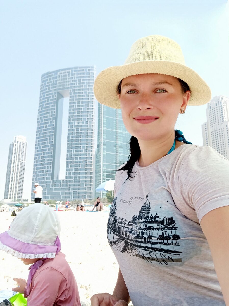 Прилетели мы в Дубай, чтобы отдохнуть от экскурсий и достопримечательностей и просто побыть на море. Только вот с погодой немного не рассчитали. В + 45 это сомнительное удовольствие находиться на пляже под палящим солнцем с маленькими детьми. Хоть апартаменты мы выбрали в 700 метрах от моря и это достаточно близко, но ведь их нужно пройти и туда и обратно. А это испытание жарой в самое пекло. Поэтому мы старались ходить на пляж утром, до обеда, чтобы успеть вернуться в отель до "солнца в зените". Сам пляж, на который мы ходили, конечно шикарный, называется Марина бич. Прекрасный песок желтого цвета, по нему ходить очень приятно. Супер комфортный заход в воду, с детьми очень удобно. А вода летом в Дубае - это что-то непередаваемое. Она как горячая ванна, когда пришёл домой зимой с улицы и хочешь прогреться. То есть заходишь в море в надежде охладиться, а становится ещё жарче. Купались мы в одежде, чтобы не обгореть и обязательно все были в головных уборах. А еще постоянно пили вод