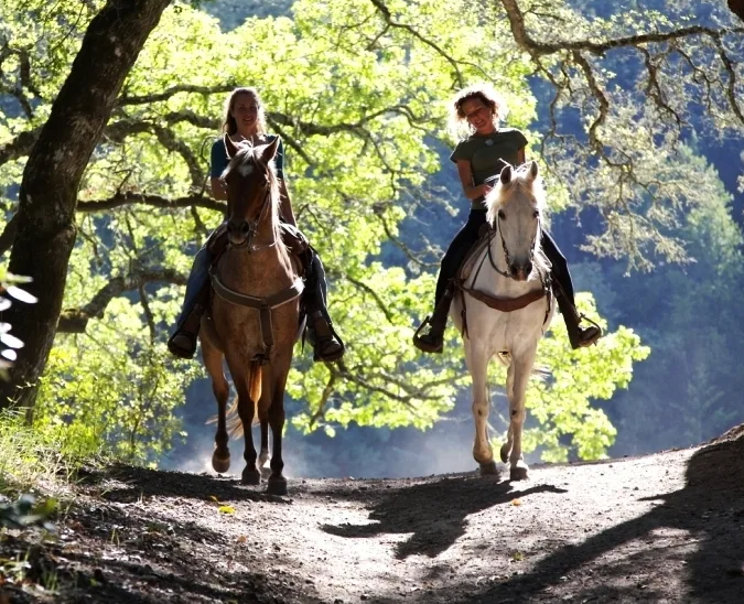 Тихая прогулка на лошадях по лесу