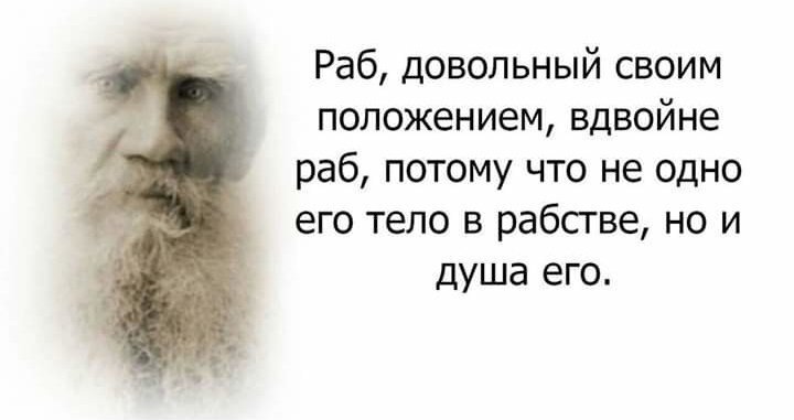 Ещё Лев Толстой говорил: Раб, довольный своим положением - вдвойне раб, ибо в рабстве не только его тело, но и душа.