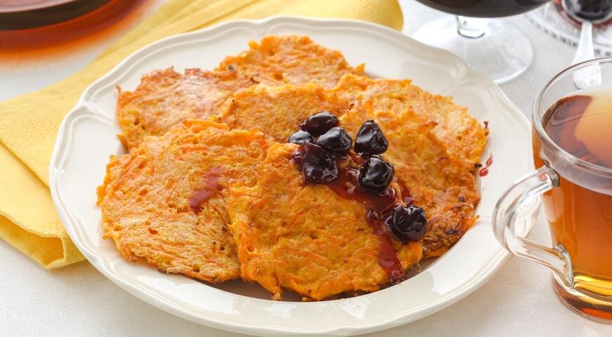 А умеете ли вы готовить оладьи из тыквы быстро? Если нет, то мы с удовольствием поделимся рецептом этого замечательного блюда. Аппетитные оладушки с румяной корочкой и ярко оранжевой серединкой… Устоять просто невозможно, особенно если они появятся на столе в компании вкусного варенья или ванильного соуса домашнего «производства». Начать день с такого завтрака — значит, с утра получить заряд отличного настроения, которого точно хватит до вечера! Кстати, в этом случае мы советуем приготовить двойную порцию оладий из тыквы, чтобы оставшиеся взять с собой на работу в качестве вкусного и полезного перекуса. ИНГРЕДИЕНТЫ ПОШАГОВЫЙ РЕЦЕПТ ПРИГОТОВЛЕНИЯ Шаг 1 Приготовьте тесто для быстрых оладий. Мякоть тыквы вымойте и натрите на крупной или средней терке. Оставьте на 10 минут, затем осторожно отожмите, чтобы избавиться от лишней жидкости. Шаг 2 Тертую тыкву переложите в большую миску. Яйца слегка взбейте венчиком. Добавьте к тертой тыкве в миску. Всыпьте муку, соль, ванильный сахар и щепотк
