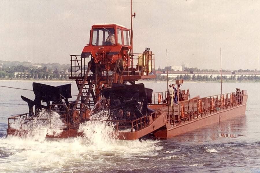 Это поистине универсальная машина, способная эксплуатироваться на мелководье (минимальная глубина всего 65 сантиметров), а также в сильно засорённых водоёмах, даже с топляками и корягами.