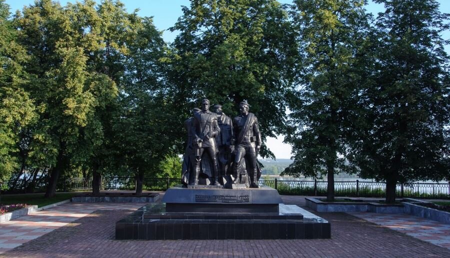 Необычный памятник посвящён подвигам рабочих судозавода и их героическому труду в годы Великой Отечественной войны. Находится на правом берегу Перми, рядом с современным зданием судозавода.