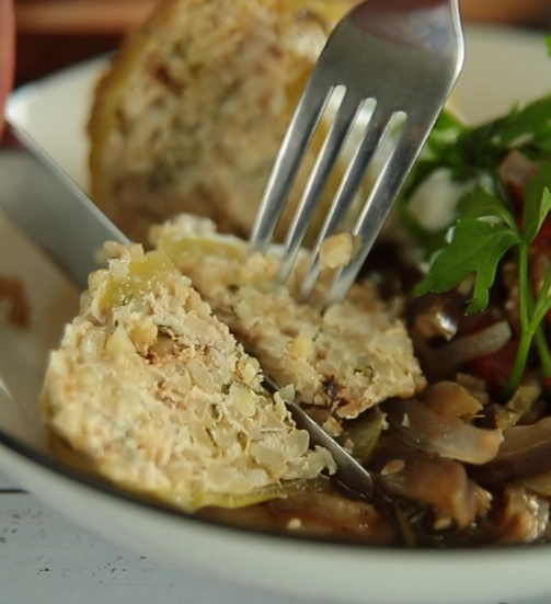 👨🏼🍳 Как готовить: 📍 Начнём наш рецепт конечно же приготовления Булгура. Его нужно отварить до полу готовности для этого возьмём один стакан Булгур, и тщательно промоем его. Потом заливаем одним объемом воды, то есть на один стакан крупы берём один стакан воды. Дальше ставим на максималку и закрываем крышкой доводим до кипения снижаем температуру на половину, то есть средний нагрев оставляем вариться до полного выкипания всей воды на это уйдёт примерно где-то 10 максимум 15 минут. 📍 Пока вариться булгур, займёмся фаршем. Возьмём куриный Фарш в него добавим яйцо, чеснок, его мелко мелко мелко перерубаем. Ещё добавим немного свежей зелени у меня здесь кинза, петрушка и зелень стебли сельдерея. Перерубаем не очень мелко чтобы её потом было видно в перце. 📍 Немного репчатого лука порежем его маленьким маленьким кубиком для этого нарезаем его сначала как будто перьями в сторону центра. Затем кладём и режем будто бы полукольцами. На выходе получаем очень маленький и аккуратный кубик,