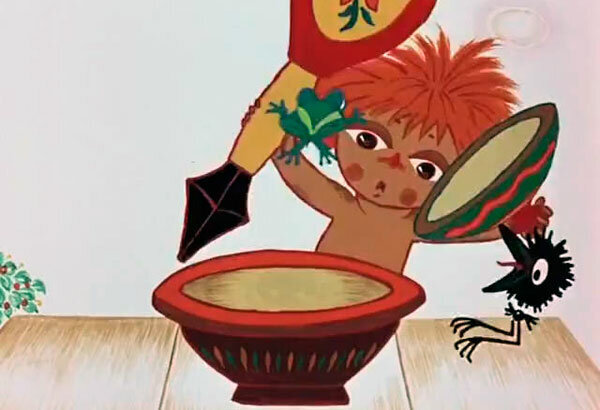 Антошка»(1969г.) Советский короткометражный рисованный мультфильм, снятый по детской песенке Владимира Шаинского и Юрия Энтина режиссёром Леонидом Носыревым. Мультфильм про ленивого мальчишку по имени Антошка, который не захотел сперва идти копать картошку, а потом отказался сыграть для ребят на гармошке, оба раза вместо этого спев им дразнилку. Зато от приглашения на обед не только не отказался, но и взял для него ложку огромных размеров. Однако в своей плошке (самой большой на столе) он вместо каши обнаруживает лягушку, которую туда положили ребята, дабы его проучить.