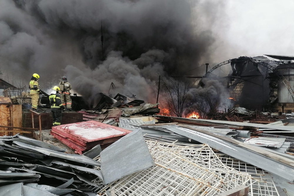 В Екатеринбурге взорвался газовый баллон и возник пожар в промзоне. Сообщение о взрыве поступило в 13 часов 23 минуты местного времени. В соцсетях сразу стали появляться фотографии черного дыма. Пресс-служба МЧС Свердловской области сообщила, что в металлическом ангаре на территории промышленной площадки на южной окраине города произошел хлопок газового баллона. От него загорелись автомобильные покрышки. Площадь пожара около 100 квадратных метров, пострадавших, к счастью, нет. Возгорание ликвидировали 18 пожарных, на место происшествия выехали 6 машин спецтехники. Менее чем за два часа пожар был потушен, идет разборка конструкций.