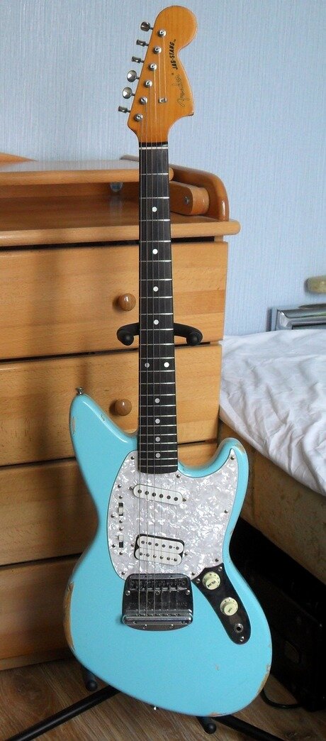 Всем привет, как вы знаете вчера был день, когда самому известному и культовому альбому группы Nirvana под названием "Nevermind" исполнилось 30 лет и в честь этого вышло переиздание альбома, в которое добавили 3 концерта. Вещь очень годная, стоит послушать. Но немногие знают, что этим все не ограничилось. Несколько месяцев назад гитарная компания "Fender" (гитарами этой марки пользовался Курт) объявила о переиздании известной гитары, созданной по проекту Курта Кобейна под названием "Jag-Stang". Про нее я писал в этой статье. Данная гитара есть в двух цветах- Sonic Blue и Fiesta Red .Эта гитара была в серийном производстве в 2001 году, но из-за низкой популярности была убрана. После этого гитара подросла в цене. Поддержанную гитару можно было найти в интернете за 95-100 тыс. рублей. Но в связи с круглой датой компания решила возобновить изготовление данной гитары. На сайте Thomann данная гитара сейчас стоит 91 тысячу рублей. Цена конечно меньше, но позволить ее может себе далеко не