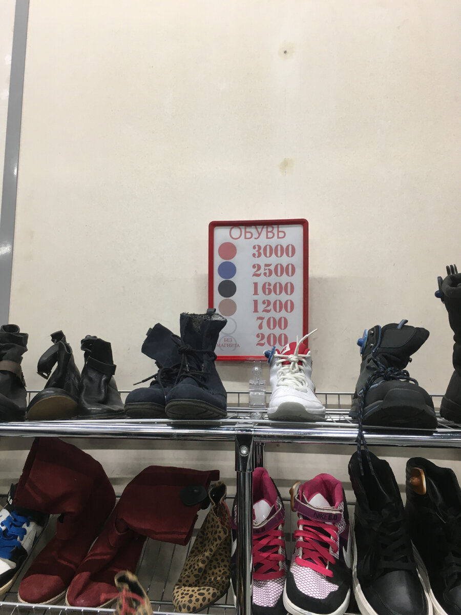 Как то гуляя по магазинам я увидела вывеску «секонд-хенд» и решила зайти ради любопытства. Теперь это мое хобби. Никогда не знаешь что найдешь. Сегодня небольшой обзор обуви из двух секондов. Начнем с Во!вы! Новый завоз удивил. Я не увидела ни одной пары с красным магнитом. Такое впервые. Покажу что есть. Обзор лишь малая часть, времени было мало. Ботинки натуральная кожа, размер 9 евро. Кеды, натуральная кожа, размер 38 Кеды под рептилию. Размер 40 Вблизи Ботильоны для очень смелой Дюймовочки. Страшно подумать, если упадёшь с такой высоты. Размер 35 Сапоги чулки на шнуровке . Размер 5 Ботинки с интересной отделкой. Размер 37 Фактурный каблук Полусапожки со звездой. Чёрный магнит. Размер 40 Ботинки 38 размер Полусапожки с пряжками. Размер не записала Ботильоны с леопардовым каблуком. Размер 37 Каблук Полусапожки с акцентным голенищем. Чёрный магнит. Размер не записала Клёпки, бисер, пайетки Сапоги с ремешками. Размер 39 Ботильоны, размер 6 Полусапожки, размер 39 Акцентная молния
