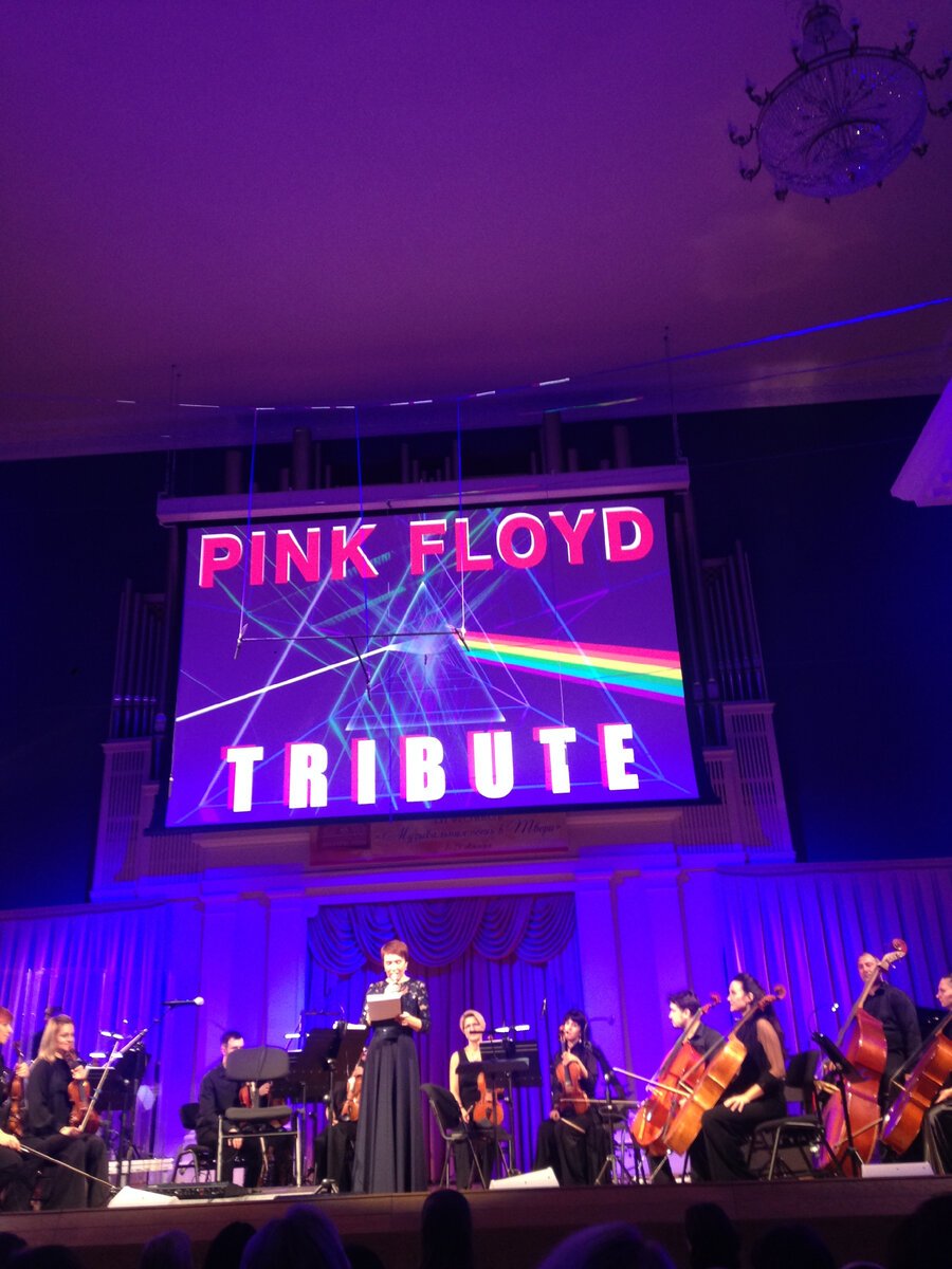 Открытие концерта. Доброе утро почитателям музыки! Не могла я оставить эту тему, не опубликовав отзыв о прослушанном и увиденном концерте. Эту музыку я знаю и слушаю давно, начиная с середины 70-х годов прошлого века. Она необычна и непохожа на другую. Да, есть композиции тяжелые, особенно, если Вы видели фильм на тему некоторых из них. Я видела, смотреть было нелегко и эти зрительные образы сразу вспоминаются, когда слушаешь определенные музыкальные композиции. Когда мне старший сын подарил билет на этот концерт( он знает мои интересы), я ждала с нетерпением, когда же я услышу #музыку Pink Floyd . Было очень интересно услышать ее с подачи этого оркестра и (главная интрига) - в исполнении известного музыканта на #электронной виолончели Денис Шаповалов, безусловно, виртуоз! Я была настроена на то, что получу массу положительных эмоций и удовольствия от концерта. Мои ожидания полностью оправдались. Эстетическое удовольствие от услышанного дополнялось еще и тем, что музыкант, ведущи