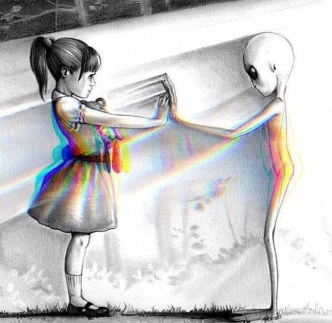 Инопланетянка вдруг стала серьёзной. Она направилась ко мне, опять подошла слишком близко, круша все границы личного пространства, но резко отодвигается я не стала, чтобы не обидеть её. Небесное создание положила свою руку мне на щёку, заглянула в глаза.