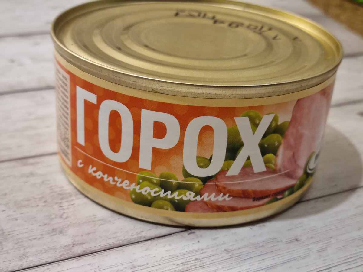 Горох с копченостями - консервы за 76 рублей. Посмотрим что внутри.
