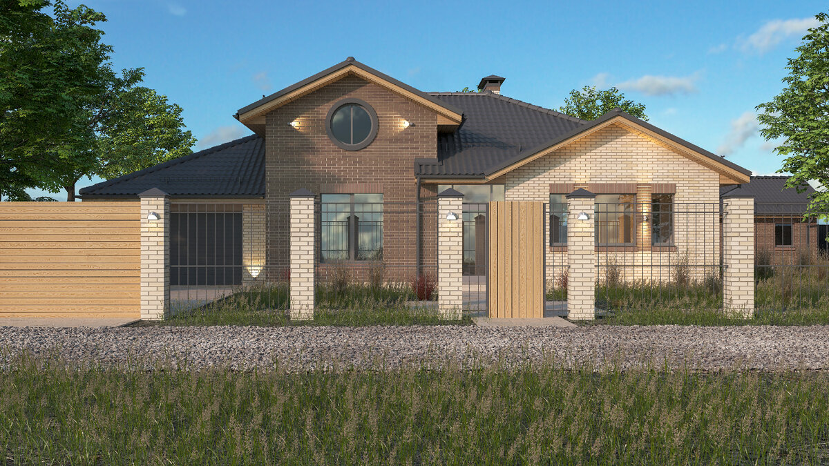 Проект одноэтажного дома 100 м2 + 30 м2 с гаражом. 3 спальни
