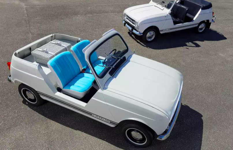 В 2019 году в Renault построили к юбилейному слёту владельцев Renault 4 вот такой электромобильчик по мотивам пляжного кабриолет