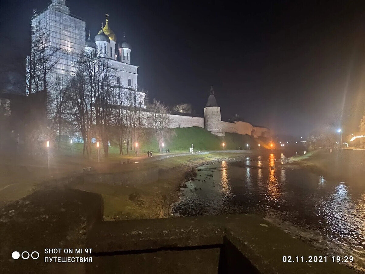 Оттуда, с высоты 6-8 метров открываются прекрасные виды и на территорию Кремля и на реки Пскову и Великую.