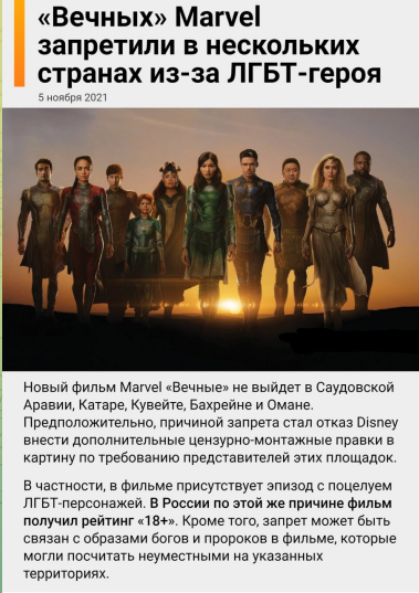 «Вечных» Marvel запретили в нескольких странах из-за ЛГБТ-героя