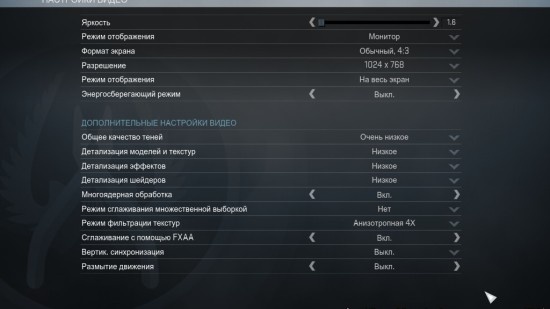 Запускаем CS:GO, переходим в «настройки» и выставляем значения как на скриншоте: Таким образом fps в вашей игре значительно поднимется. Для любителей более плавной картинки, советую поиграть с настройками «Режим фильтрации текстур» и «Сглаживание с помощью FXAA», например: