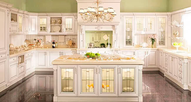 Фасады для классических кухонь делают из натурального дерева и шпона, красят МДФ эмалью или покрывают пленкой ПВХ. У каждого материала есть свои особенности. Нет единственно правильного решения при выборе классического фасада.