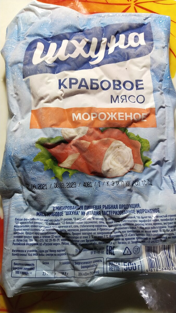 Не так давно в Светофоре появились крабовые палочки этой фирмы, а вот теперь и крабовые мясо, в смысле имитация.