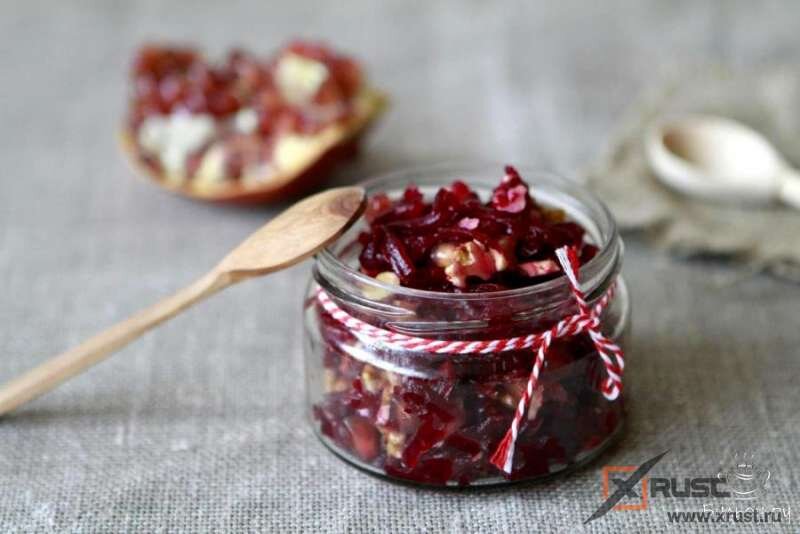 Вкусный и простой в приготовлении свекольный салат однозначно придется по вкусу любителям свеклы, и станет еще одним рецептом, который будет разнообразить ваше осенне - зимнее меню. Каждый из нас уже пробовал традиционный салат из свеклы и грецких орехов, но, в этот салат мы также добавим слегка поджаренный лук, гранат и лимонный сок. Итак нам понадобятся следующие продукты: