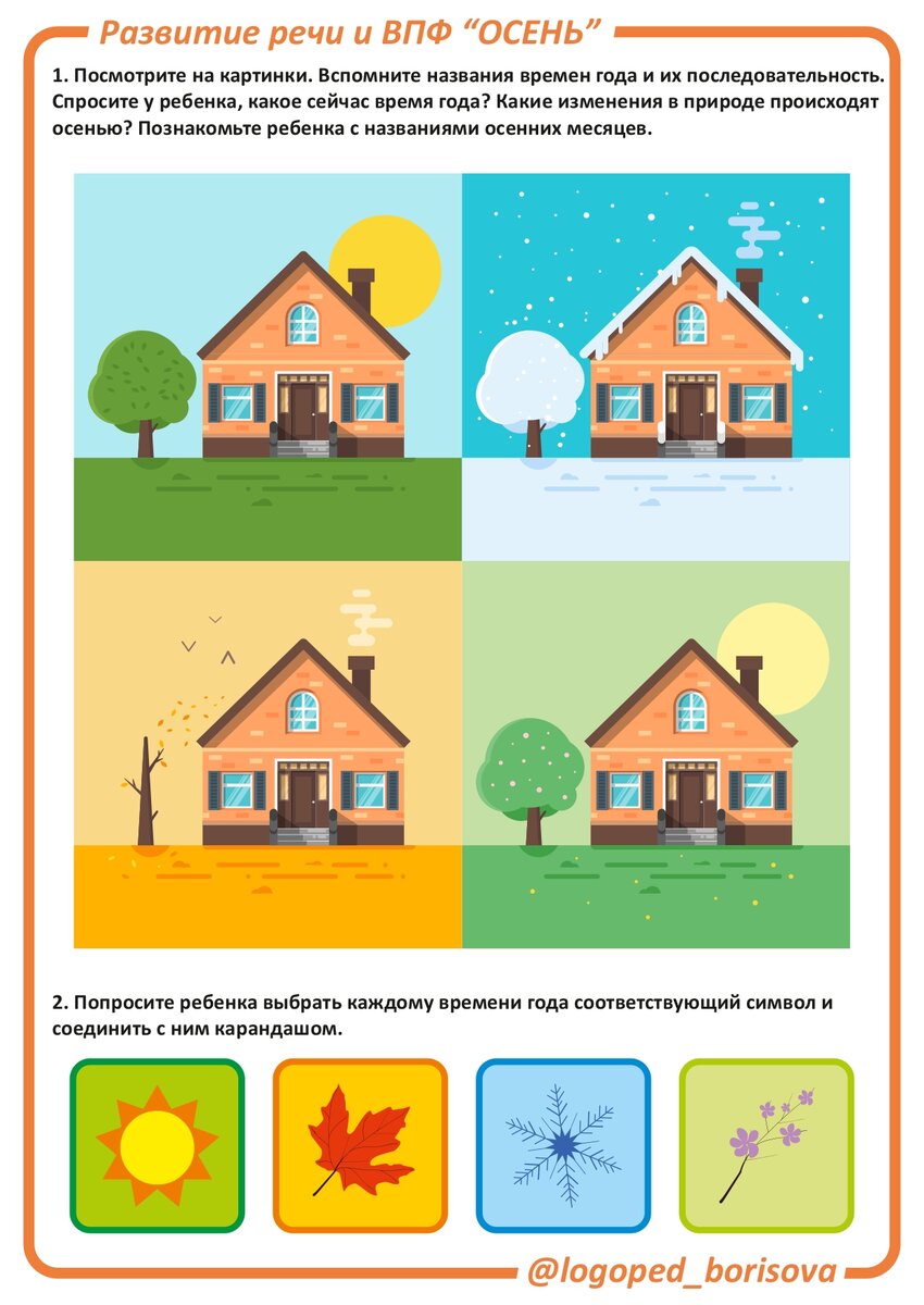 1️⃣Обсудите с ребенком наступившее время года – осень. В ходе прогулок отмечайте изменения в природе, животном мире. Обращайте внимание на то, как стали одеваться люди с наступлением холодов. Просите ребенка отвечать полным предложением.