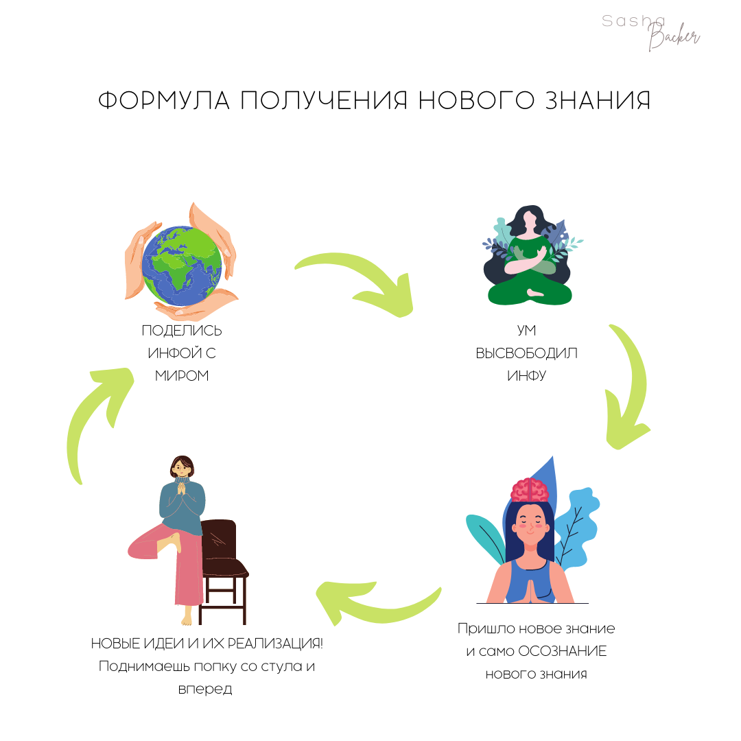 ДЕЛИСЬ ИНФОЙ С МИРОМ, ЧТОБ ПРИХОДИЛА НОВАЯ Честно, я прям жадничала своими знаниями и опытом на общее обозрение. Вот узнала что-то клевое, прожила новый опыт, и думаю, отлажу ка я эту находку для более лучшего случая. Какого лучшего случая, глупенькая? Лучший случай и момент - прямо здесь и сейчас! "Отдавая - получаем!" Какая замыленная фраза. Но какая весомая. И работающая. Я сегодня поделилась свои опытом, а в ответ на высвобождение этой информации мне пришло кучу новой. Новых осознаний и решений. Прикинь какая простая формула твоего развития, твоего успеха, называй это как хочешь. ФОРМУЛА ПОЛУЧЕНИЯ нового знания: 1. Поделился опытом/инсайтом (отдал инфу в мир) ⬇️ 2. Твой ум освободился (местечко на жестком диске освободилось для чего-то нового) ⬇️ 3. Пришло новое знание и само осознание нового знания ⬇️ 4. Новые мысли и решения. Действия. И вот так по-кругу! Когда мы делимся инфой с Мирой - нам приходит новая 🙌🏻 Это же такой КАААЙФ Почему так происходит? - Новые знания и осознания