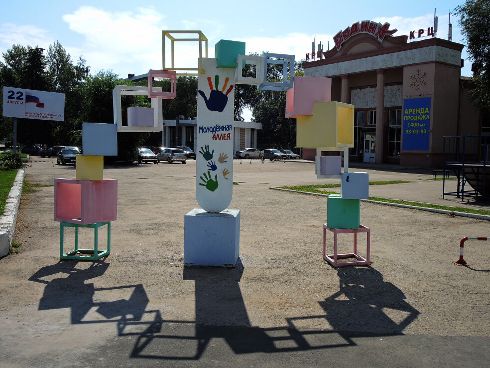 Мы прогуливаемся по исторической части соседнего с Саратовом города Энгельса. В прошлый раз остановились на пересечении улиц Коммунистической и площадь Свободы. На этом перекрёстке находится здание бывшего кинотеатра «Родина». Он был открыт в 1938 году. Его зал был рассчитан на 500 зрителей, в фойе был положен дубовый паркетный пол, стены были расписаны картинами, а холлы разделены мраморными колоннами. Перед кинотеатром были установлены памятники Ленину и Сталину. В 1980-х годах во время проведения ремонта здания памятники были демонтированы. В постсоветское время в кинотеатре была проведена масштабная модернизация. Однако, в феврале 2019 года кинотеатр был закрыт. Внутрь попасть, конечно, мы не смогли. Осмотрели только снаружи. Что со зданием сейчас, я не знаю.