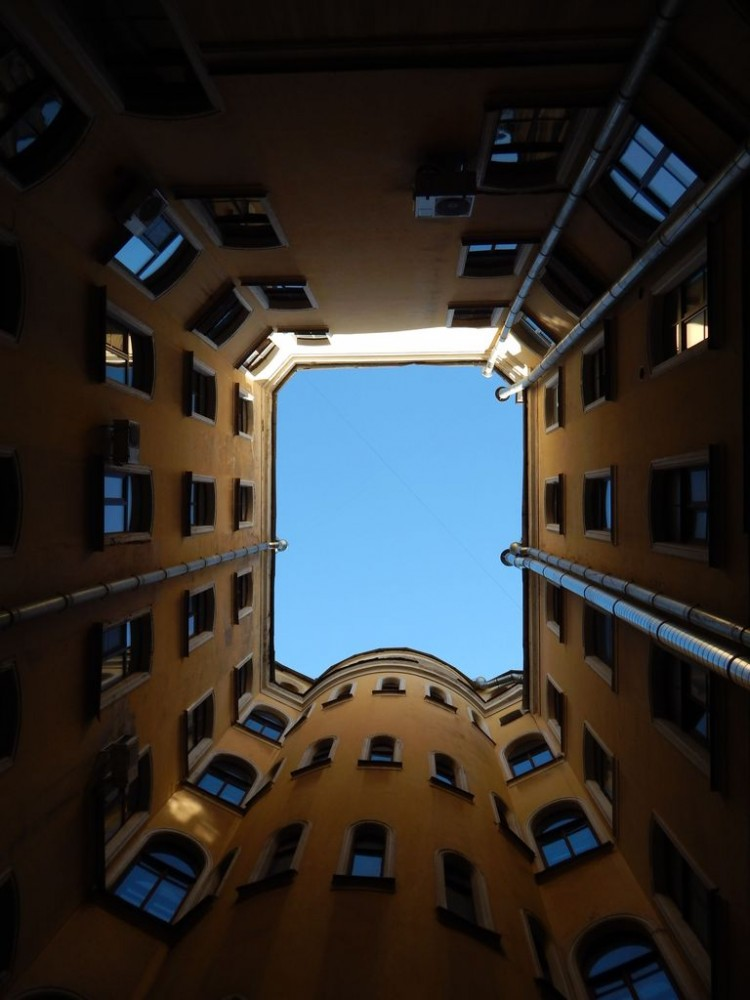В прошлый приезд в Питер мы открыли для себя питерские парадные. В Инстаграмме мой интерес ещё больше разжёг Сергей "Санкт-Петербургер", так что выбора "искать или не искать" не стояло. Доходный дом купца Григория Елисеева был построен по проекту архитектора Гавриила Барановского в 1891-1892 годах. Парадная известна своей винтовой лестницей и кованым лифтом. В верхней части окон сохранились оригинальные желтые стекла, создающие внутри теплое освещение. Маленькое солнышко Из-за сочетания желтого и белого парадную прозвали “ромашкой”.