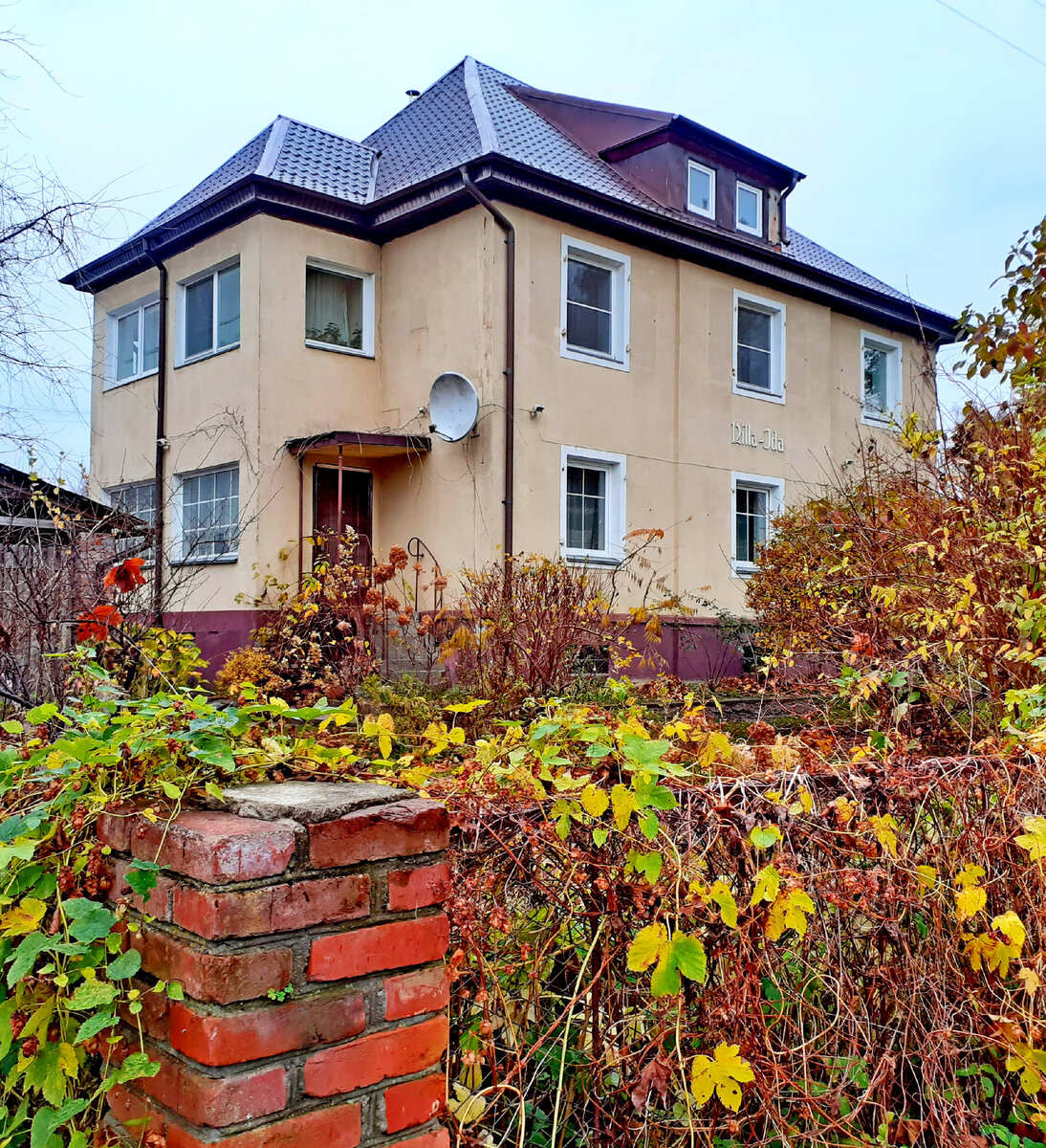 Рядом - еще один, вроде такой же, но другой. Здесь жильцы решили пока не менять немецкую черепицу - видимо, проблем с протечками нет.