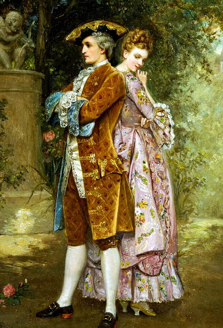- На мгновение француз провожает глазами высокую симметричную фигуру, затем, решив, что лучше всего изобразить безразличие, пожимает плечами и, дав волю невеселому смеху, выходит на балкон, чтобы найти бальзам для своего израненного духа в руках своей невесты.