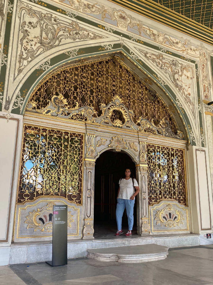 Дворец #Топкапы - место жизни 25 пяти султанов Османской империи - это четыре просторных двора на холме, с видом на Босфорский залив и залив Золотого рога. Пейзажи из дворца открываются просто потрясающие. Наверное в своё время это было очень роскошное место, сейчас - это парковый и музейный комплекс. Я всегда стараюсь смотреть новые места с гидом, так как сам даже изучая вопрос можешь столько интересного не узнать. Нужно понимать, что дальнейшее - это то, что я записала со слов гида и мои мысли на этот счёт. Главное для Султана династии османов было удержать трон. И по этому они шли на очень странные по моему мнению меры, чтобы этого добиться. И необходимость казнить (потом заменили на - сажать) всех родственников мужского пола при восшествии на трон, это ещё не все. ⠀ Во-первых Султаны почти не женились на свободных женщинах, и принцессах других государств, предпочитая заводить потомство с рабынями. Чтобы родня жены видимо не влияла на процесс управления. Это каким надо быть без